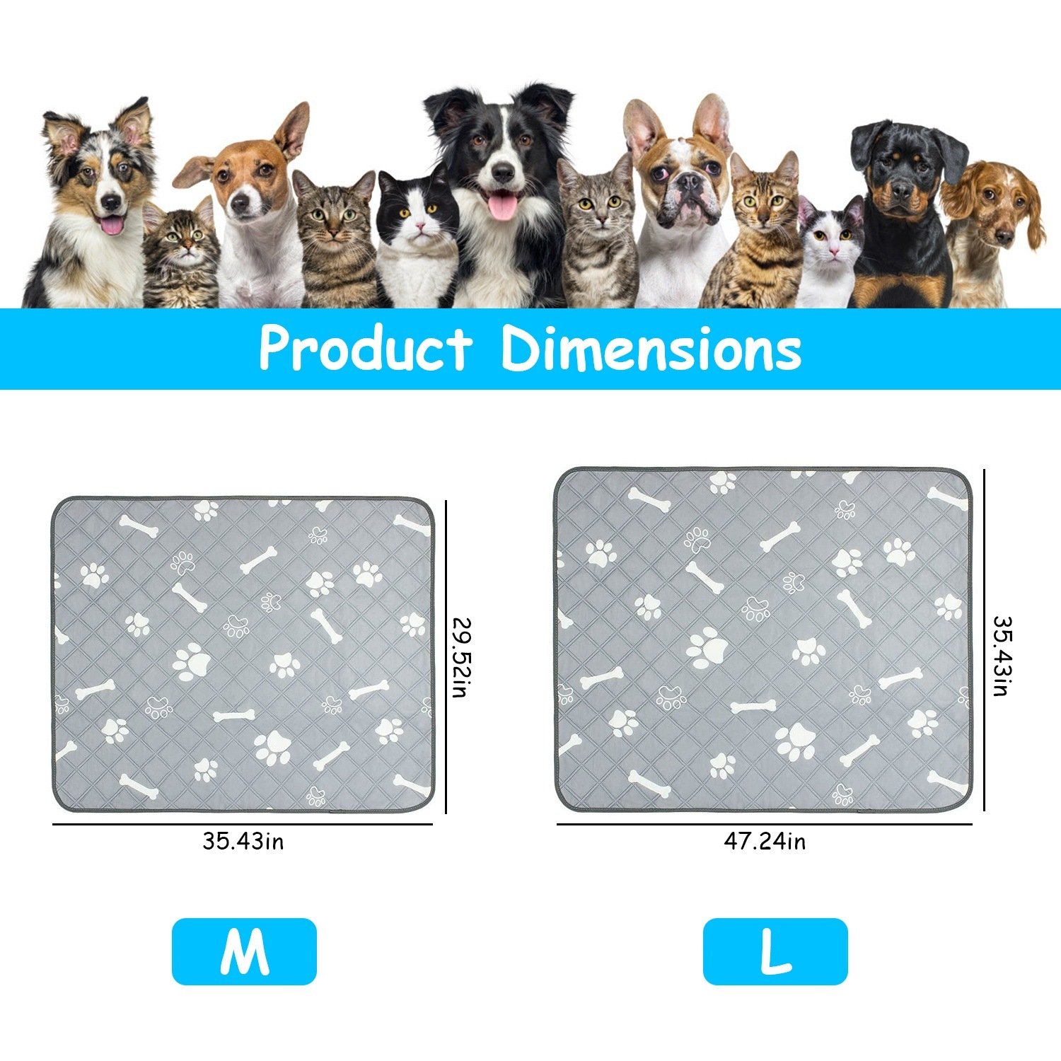 *Proper Size*:Come with M/L size options,our pet pee pads with cute bones and footprints patterns works perfectly for pets of all ages and figures,like puppies,kittens,adult dogs,elderly canines. An ideal helper to keep your floor dry and clean and furniture from uncontrolled urination and defecation.