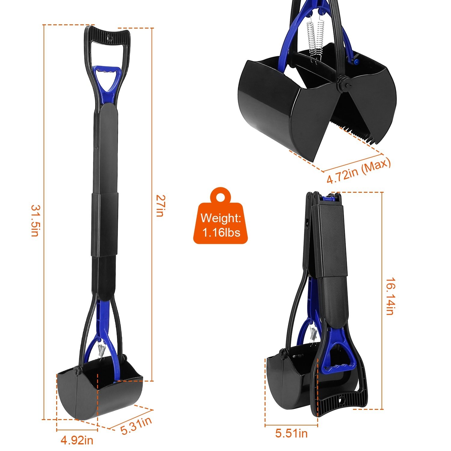 31.5in Pet Pooper Scooper Foldable Long Handle Dog Poop Waste Pick Up Rake for Large Medium Small Dogs Cats Pets