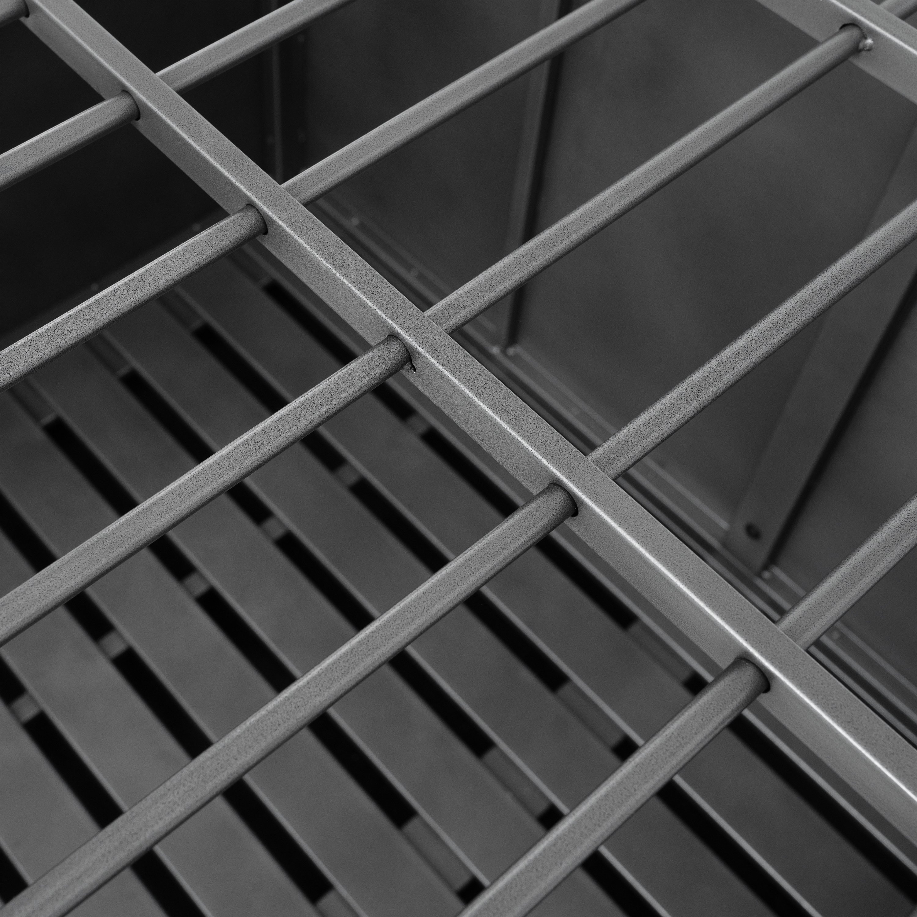 Sturdy: Our dog crates features 10 mm diameter metal pipes that effectively prevent chewing, ensuring durability and avoiding deformation. The heavy-duty frame construction combines square tubing and metal sheet, providing your pet with a long-lasting, stable, and safe resting place.