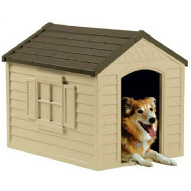 Stylish, easy-to-assemble home for your dog or puppyCrowned floor with channel around inside edge to capture fluids and keep pet dryRemovable roof for easy cleaningDesigned for dogs up to 70 poundsEasy snap together assemblyDurable resin constructionVents provide air circulationCan be staked to the groundIncludes vinyl doorsColor: BrownDimensions (door opening) (W x H): 11.75 x 20.50 inchesDimensions (L x W x H): 35 x 27 x 29.50 inchesManufacturer warranty: 90-day warranty