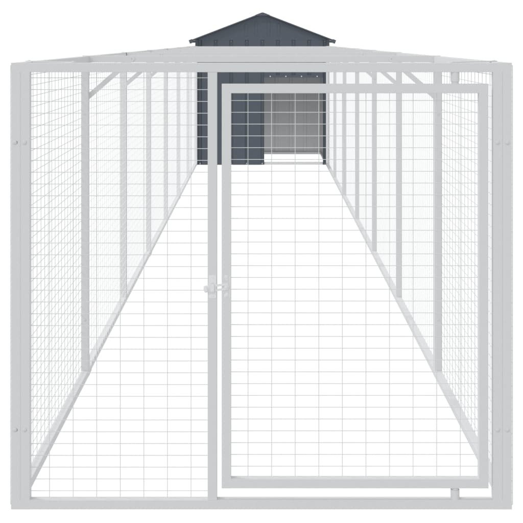 Versatile use: Combing with the extended run, the versatile doghouse provides ample space for your pet. It features multiple uses: playing, exercising, training, or simply keeping your puppy safe. It will be the perfect play paradise for your furry friends!Durable construction: Thanks to the sturdy and heavy-duty galvanised steel construction, the dog kennel is durable and built to last.Mesh design: The mesh design of the extended run helps prevent mischief and unexpected accidents while enabling ventilation.Practical roof: The roof of the dog cage protects the puppy from the sun, rain, snow, and other weather conditions.Convenient access: There is an entrance to the animal house and a door with a latch on the extended run, both making it easy to get in and out.Color: AnthraciteMaterial: Galvanized steelOverall dimensions: 46.1" x 320.1" x 48.4" (W x D x H)Dog house:Outer dimensions: 46.1" x 40.6" x 48.4" (W x D x H)Inner dimensions: 40.9" x 35.4" x 47.2" (W x D x H)Entrance area size: 18.5" x 27.6" (W x H)Extended run:Outer dimensions: 42.1" x 281.5" x 37.4" (W x D x H)Inner dimensions: 40.9" x 280.3" x 36.2" (W x D x H)Door size: 22.4" x 33.9" (W x H)Assembly required: YesDelivery contains:1 x Dog house1 x Extended runCalifornia Proposition 65
