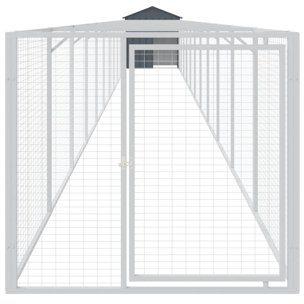 Versatile use: Combing with the extended run, the versatile doghouse provides ample space for your pet. It features multiple uses: playing, exercising, training, or simply keeping your puppy safe. It will be the perfect play paradise for your furry friends!Durable construction: Thanks to the sturdy and heavy-duty galvanised steel construction, the dog kennel is durable and built to last.Mesh design: The mesh design of the extended run helps prevent mischief and unexpected accidents while enabling ventilation.Practical roof: The roof of the dog cage protects the puppy from the sun, rain, snow, and other weather conditions.Convenient access: There is an entrance to the animal house and a door with a latch on the extended run, both making it easy to get in and out.Color: AnthraciteMaterial: Galvanized steelOverall dimensions: 46.1" x 480.7" x 48.4" (W x D x H)Dog house:Outer dimensions: 46.1" x 40.6" x 48.4" (W x D x H)Inner dimensions: 40.9" x 35.4" x 47.2" (W x D x H)Entrance area size: 18.5" x 27.6" (W x H)Extended run:Outer dimensions: 42.1" x 442.1" x 37.4" (W x D x H)Inner dimensions: 40.9" x 440.9" x 36.2" (W x D x H)Door size: 22.4" x 33.9" (W x H)Assembly required: YesDelivery contains:1 x Dog house1 x Extended runCalifornia Proposition 65