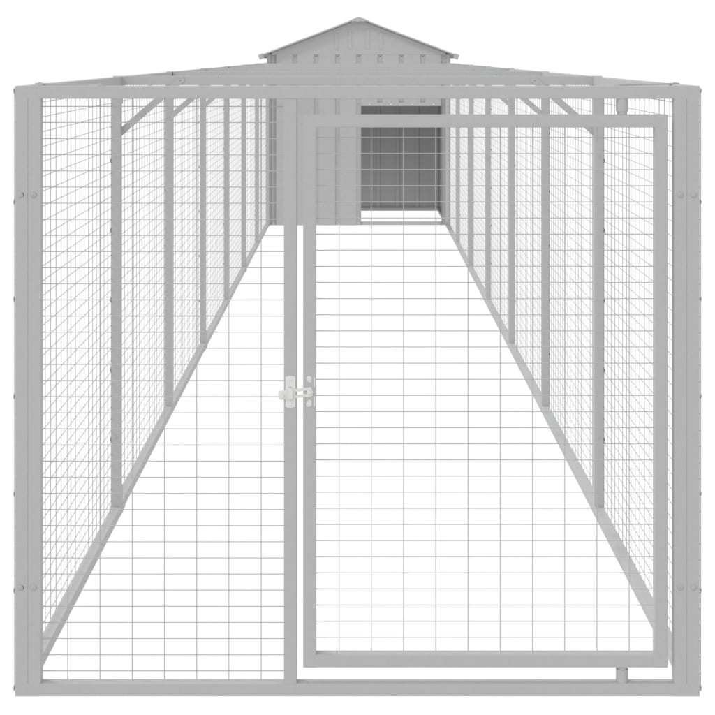 Versatile use: Combing with the extended run, the versatile doghouse provides ample space for your pet. It features multiple uses: playing, exercising, training, or simply keeping your puppy safe. It will be the perfect play paradise for your furry friends!Durable construction: Thanks to the sturdy and heavy-duty galvanised steel construction, the dog kennel is durable and built to last.Mesh design: The mesh design of the extended run helps prevent mischief and unexpected accidents while enabling ventilation.Practical roof: The roof of the dog cage protects the puppy from the sun, rain, snow, and other weather conditions.Convenient access: There is an entrance to the animal house and a door with a latch on the extended run, both making it easy to get in and out.Color: Light grayMaterial: Galvanized steelOverall dimensions: 46.1" x 320.1" x 48.4" (W x D x H)Dog house:Outer dimensions: 46.1" x 40.6" x 48.4" (W x D x H)Inner dimensions: 40.9" x 35.4" x 47.2" (W x D x H)Entrance area size: 18.5" x 27.6" (W x H)Extended run:Outer dimensions: 42.1" x 281.5" x 37.4" (W x D x H)Inner dimensions: 40.9" x 280.3" x 36.2" (W x D x H)Door size: 22.4" x 33.9" (W x H)Assembly required: YesDelivery contains:1 x Dog house1 x Extended runCalifornia Proposition 65