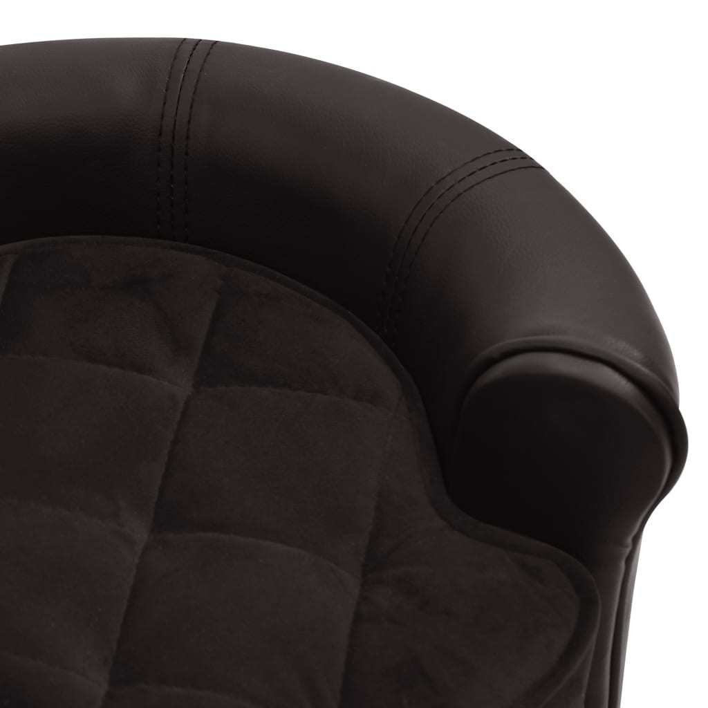 This thickly padded pet sofa, featuring a wooden frame covered with easy-to-clean faux leather, provides a comfortable place for your beloved little friends. The washable cushion cover is made of soft-to-touch plush, adding extra comfort. The wooden legs with an anti-slip design add stability and sturdiness to the entire construction. Additionally, the outer body is exceedingly sturdy, offering a safety place for your pet to relax.
