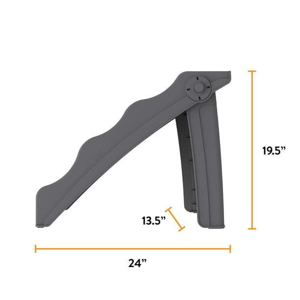Help your furry friends safely get up to their favorite spot on the bed or couch with the Flexi-Step! These foldable and lightweight stairs are well-designed and durably constructed – no assembly needed! Just push the two built-in buttons to fold them up for storage or to open them up for your pet's use. Whether going up or down, the non-slip textured treads give paws traction so your pet can confidently come and go as they please. The Flexi-Steps also come with optional non-skid feet to help the steps stay put while protecting your floors. Although light, the strong, durable folding steps can support up to 150 pounds and are suited for small to medium size pets.