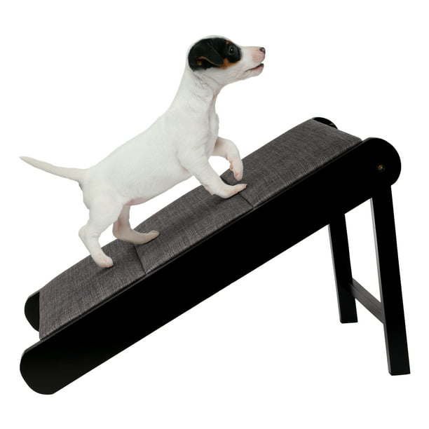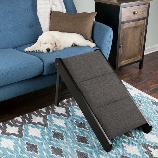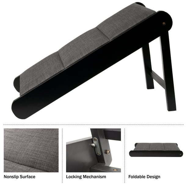 Foldable Wooden Dog Pet Ramp for Bed, Couch, or Vehicle (Black/Gray)