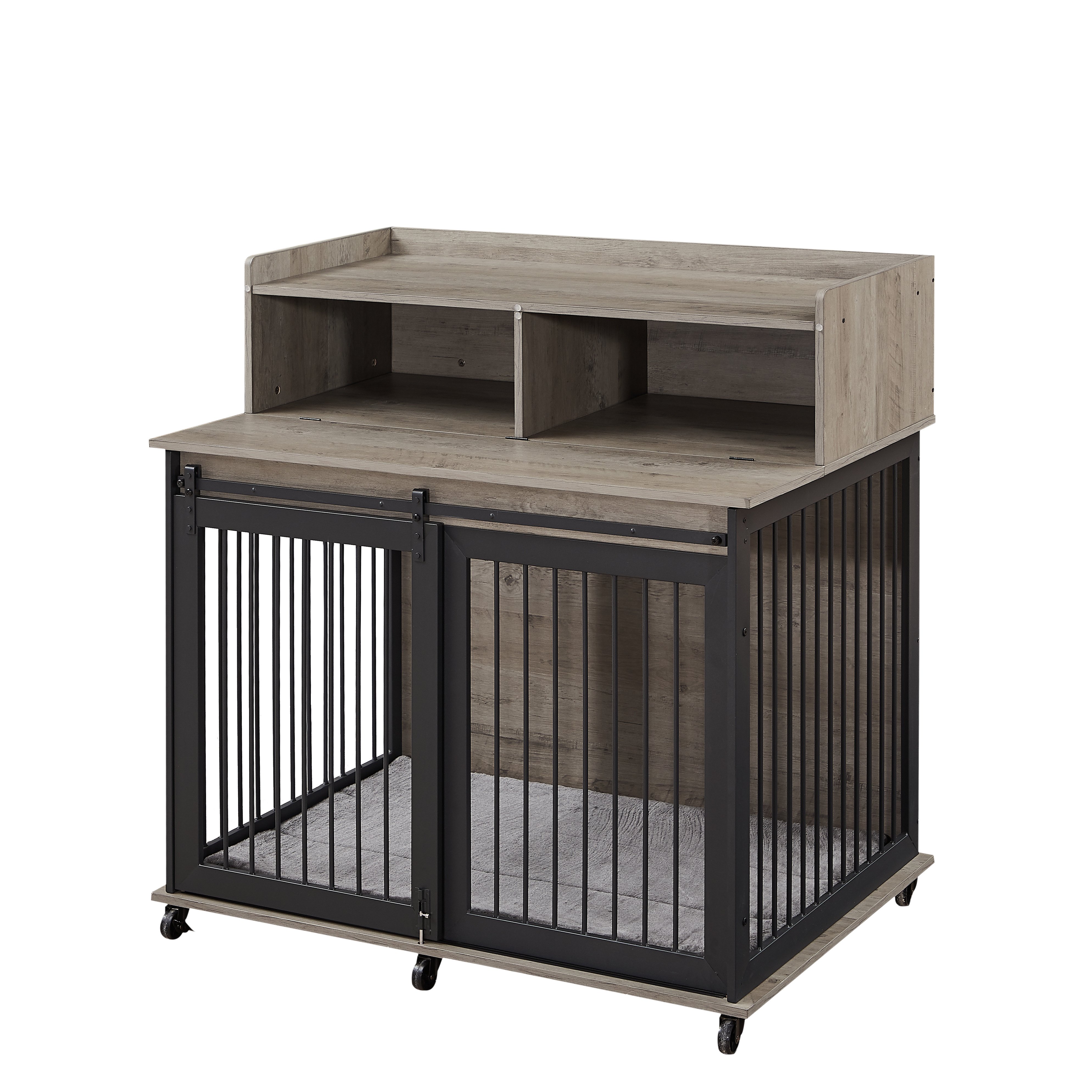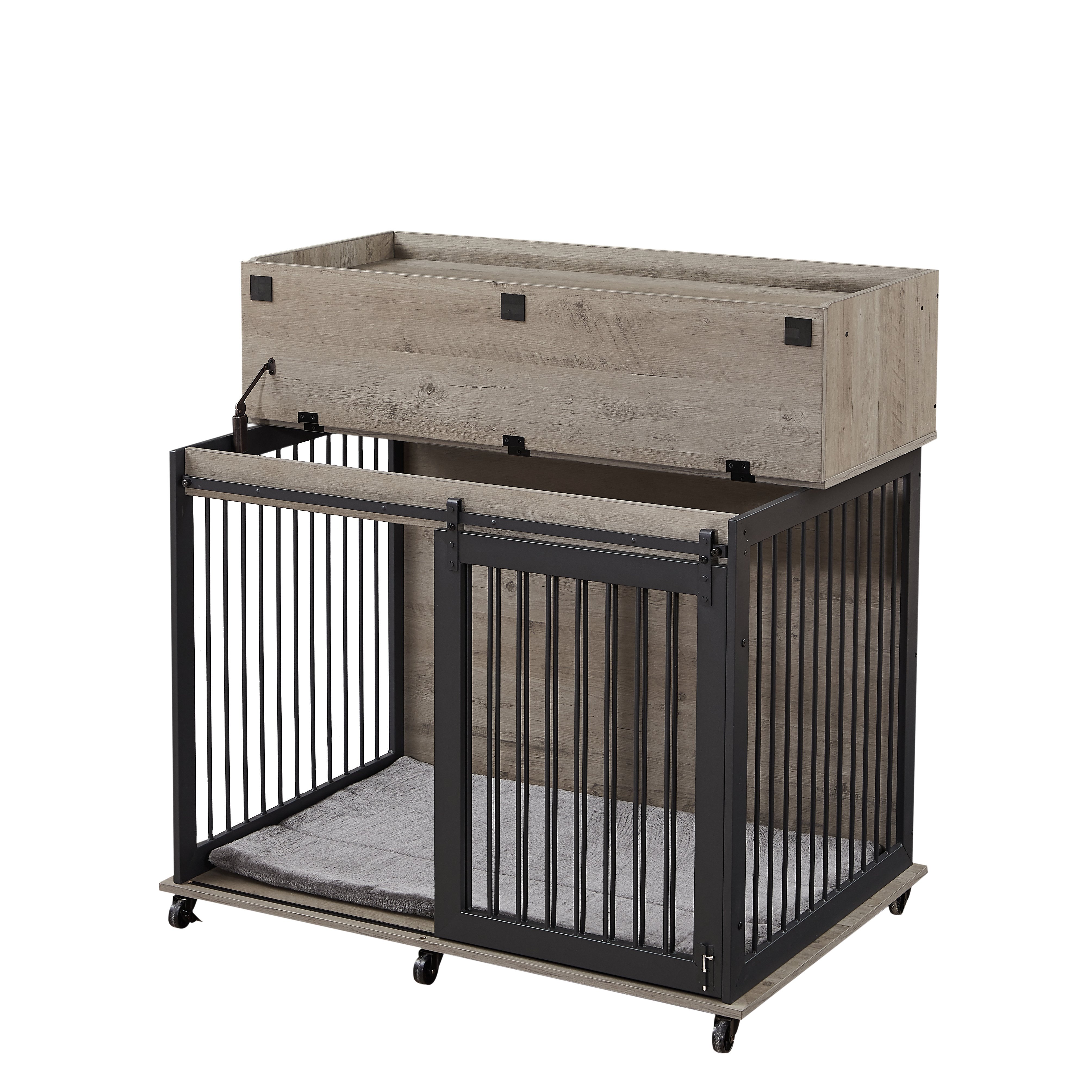 Furniture type dog cage iron frame door with cabinet, top can be opened and closed. Grey, 43.7'' W x 29.9'' D x 42.2'' H