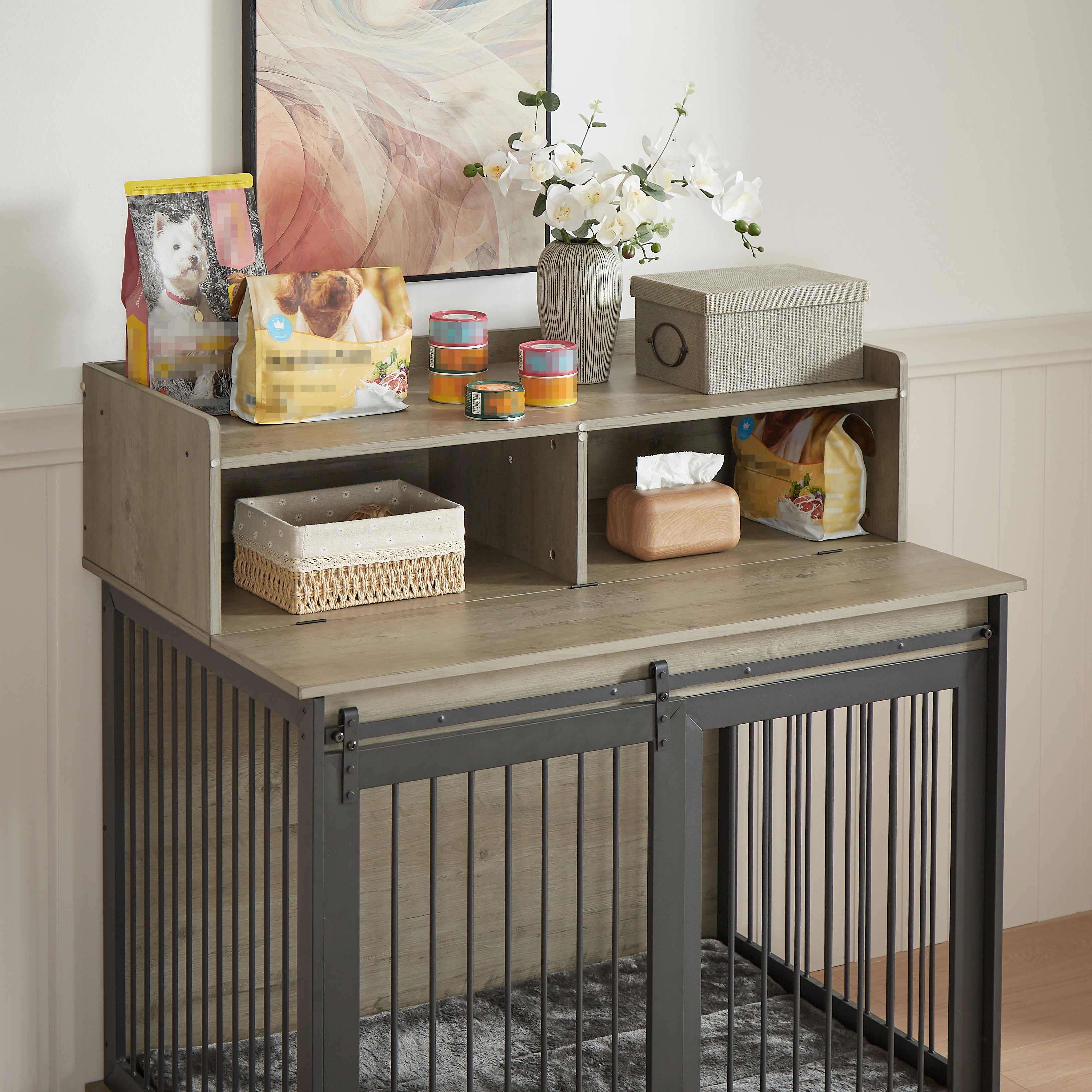 Home > Furniture type dog cage iron frame door with cabinet, top can be opened and closed. Grey, 43.7'' W x 29.9'' D x 42.2'' H