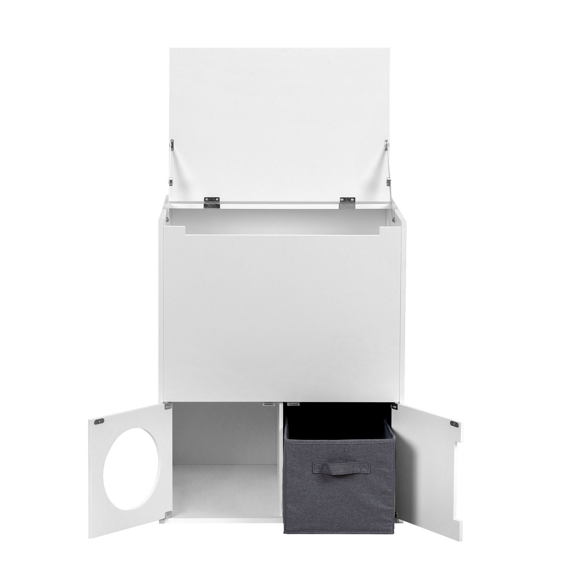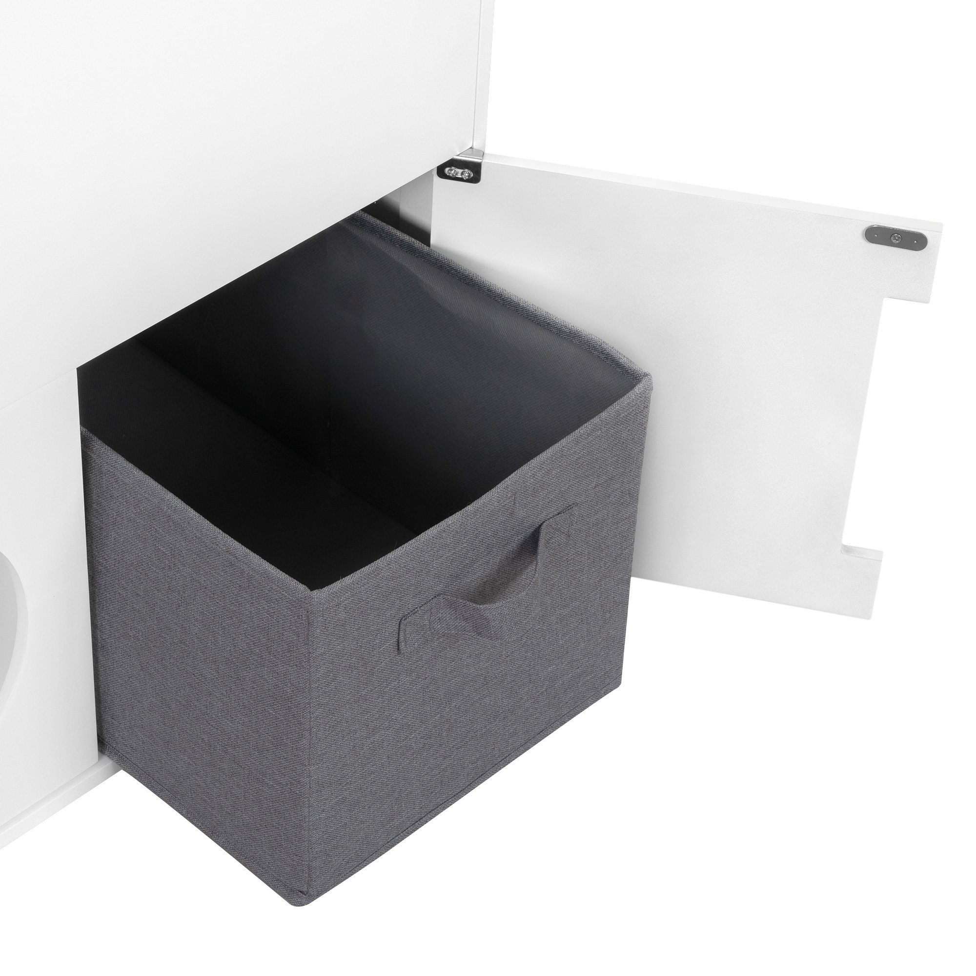 Large Wooden Cat Litter Box Enclosure With Jumping Platform and Fabric Drawer; Indoor Hidden Cat Washroom Furniture; White