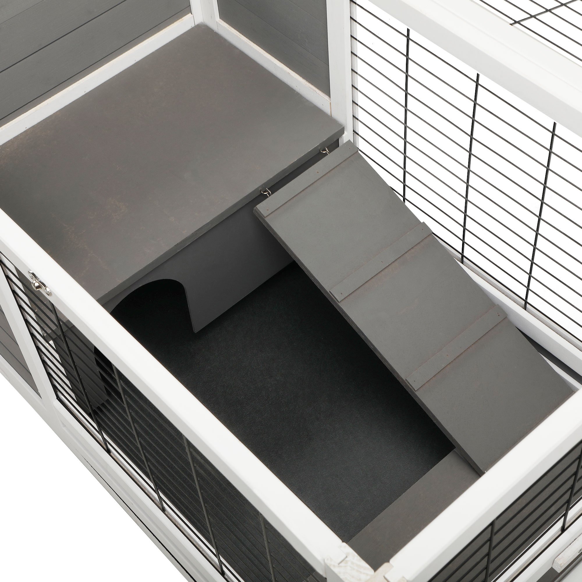 Home > Luxury 2-Storey Pet House Box Wooden Cage Comfy Cabin for Small Animals, Grey White