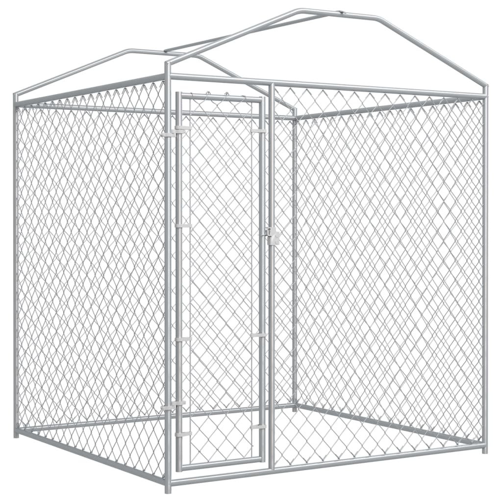 The dog kennel is made of galvanized steel. The included top canopy, made of 100% polyethylene, is fire-resistant and UV protected, providing protection from sun, rain, snow and other weather conditions.