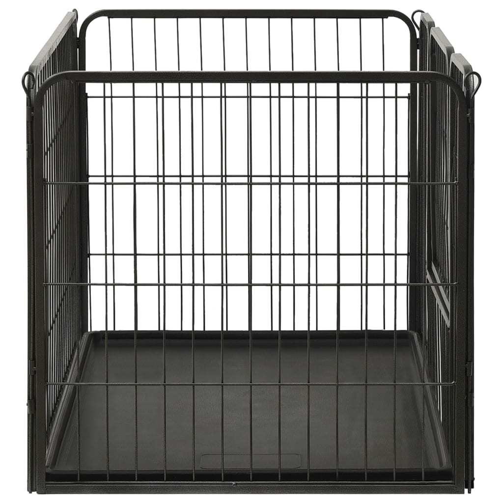 This dog playpen can be easily set up or taken down. It features a hinged door with a security latch for easy access. This durable and weather-resistant playpen is made of rustproof powder-coated steel, making it suitable for outdoor and indoor use. A plastic bottom tray is also included in the delivery.Color: BlackMaterial: Powder-coated steelOverall dimensions: 36" x 23.2" x 24" (W x D x H)Door size: 12.2" x 16.5" (W x H)With 1 hinged door with a security latchSuitable for indoor and outdoor useEasy to assembleIncluding a plastic bottom tray