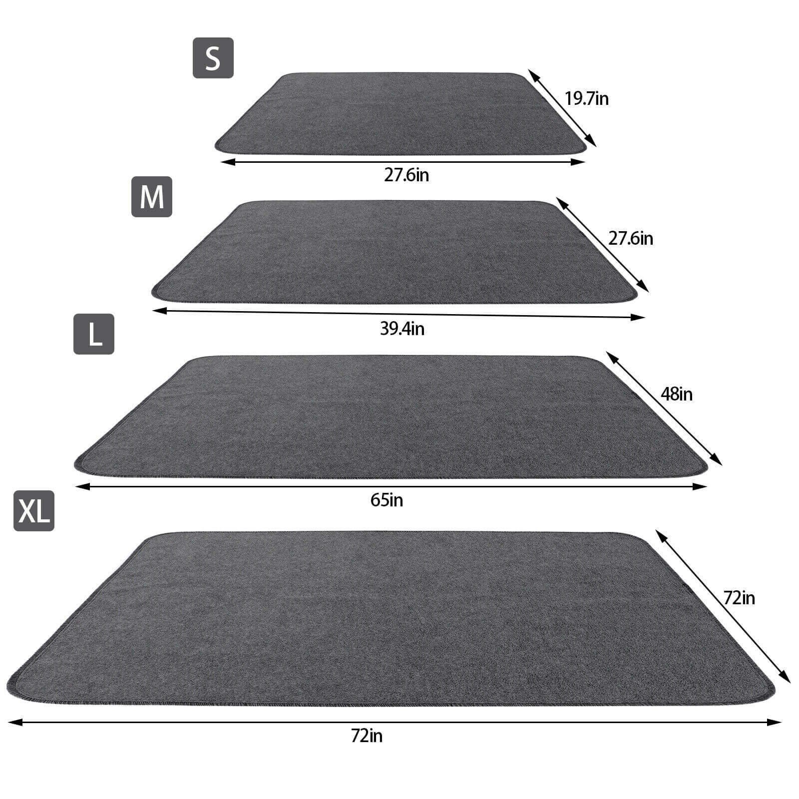 Multiple UsesExtra-large mat is perfectly used for the pin, cage, furniture, leather chair, floor, carpet, car seat. The waterproof pet pad can be used as a feed pad or under the water bowl. Specifications:Type: Dog Training PadsMaterial: FleeceColor: GrayFeatures: Soft,Washable,Reusable,Waterproof,Non-slip,Fast AbsorbingSize: S:19.7"x 27.6"M: 27.6" x 39.4"L: 48" x 65"XL: 72" x 72" Package includes:1x Dog pee pad