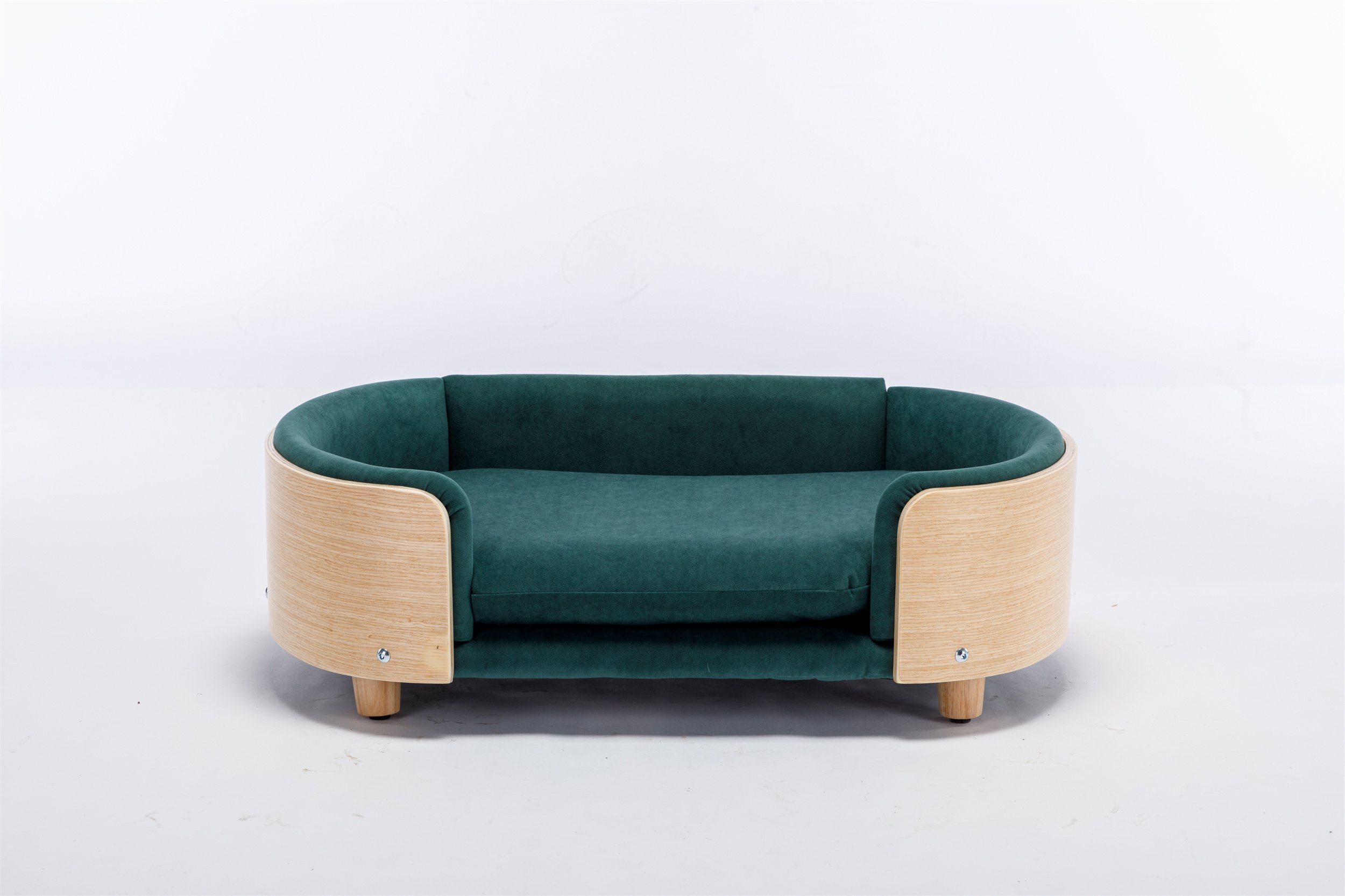 Scandinavian style Elevated Dog Bed Pet Sofa With Solid Wood legs and Bent Wood Back, Velvet Cushion,Mid Size,Dark green