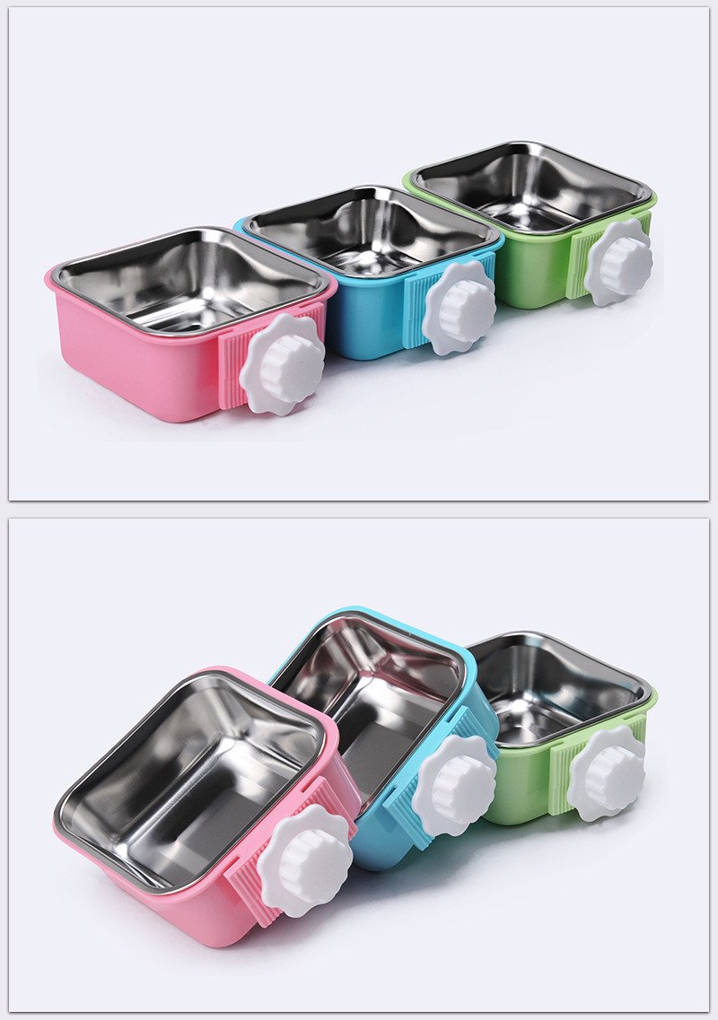 2.This dog feeding bowl attach directly to the cage for easy feeding. Or you can use it as a basic bowl. There is a plastic fixed bowl and metal bowl in one set, you can also separate them into two bowls.