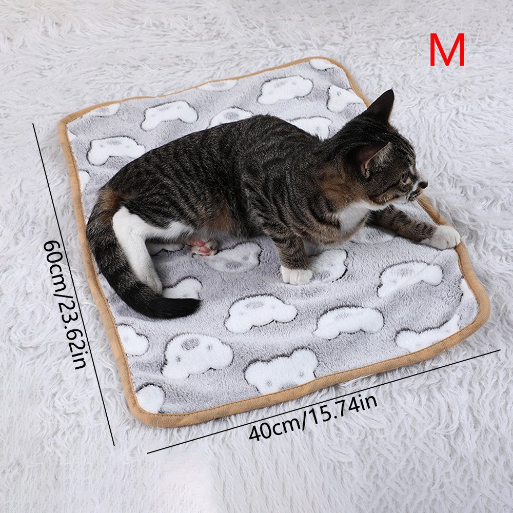 Warming Pet Pad Cartoon Paw Print Cat Warm Bed Plush Sleeping Pad For Small Puppy Dogs Kitten