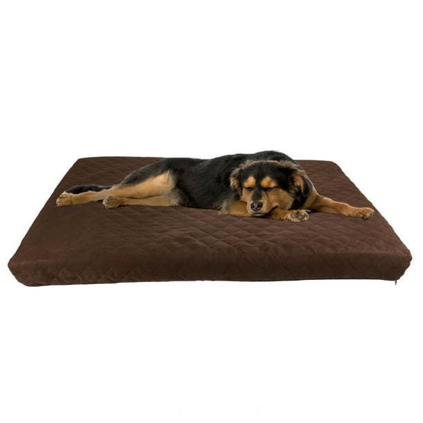 PRODUCT DETAILS –Materials: Microsuede, Polyurethane Foam, and Memory Foam. Dimensions: (L) 44' x (W) 35' x (H) 3.5'. Large Dog Bed with Removable Cover is Recommended for Pets Weighing 65-110 pounds. Color: Brown.