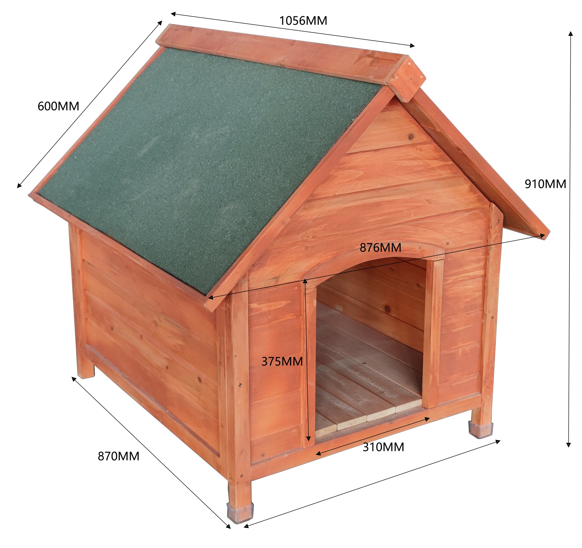SLOPING ROOF: The heavy-duty mineral felt on the roof can keep dogs protected from rain, wind, sleet and snow. It's a comfortable and warm house for your dog.